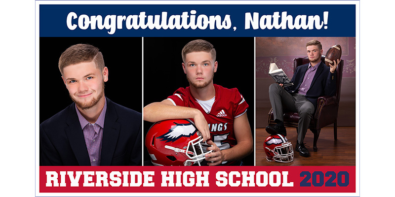 Add a banner to your house to honor your graduate, to celebrate a birthday or any for occasion. Our banners are made of 13 oz vinyl, are weather proof and come with grommets for easy hanging. Banners can be any size from 2’x3’ up to 4’6” x 10’ and beyond. We will work with you to custom design your banner using photos we took or photos you provide.